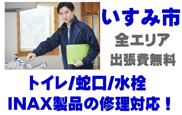 いすみ市でINAX製品の修理業者をお探しなら当社までお気軽にお問い合わせください。トイレ便器タンクの故障、便座の修理、蛇口やシャワーの水漏れなどイナックス製品に関するトラブルなら何でもご相談ください。